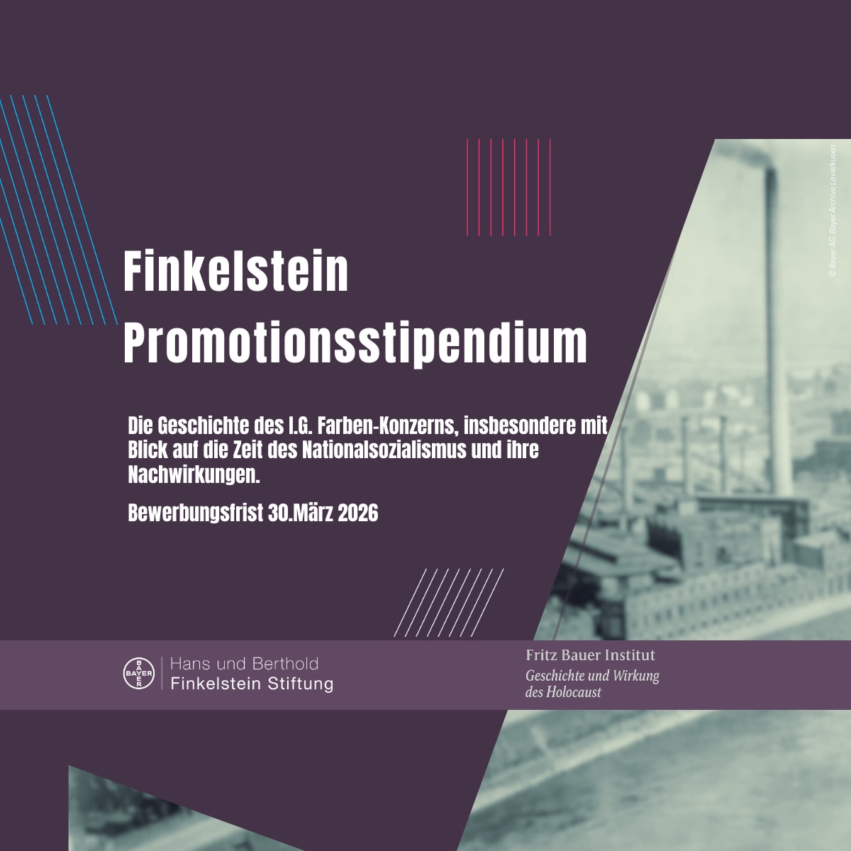 Das Fritz Bauer Institut vergibt in Kooperation mit der Hans und Berthold Finkelstein Stiftung zwei Promotionsstipendien zur Erforschung zentraler Aspekte der Geschichte der I.G. Farben.